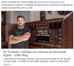 Maio 28, 20182018, Comemorações, maio de 2018Casa Museu Regional Dia Internacional dos MuseusAinda no âmbito da comemoração do #DiaInternacionaldosMuseuscontinuamos a publicar o resultado da parceria da Casa-Museu Regional de Oliveira de Azeméis com a LOBA.