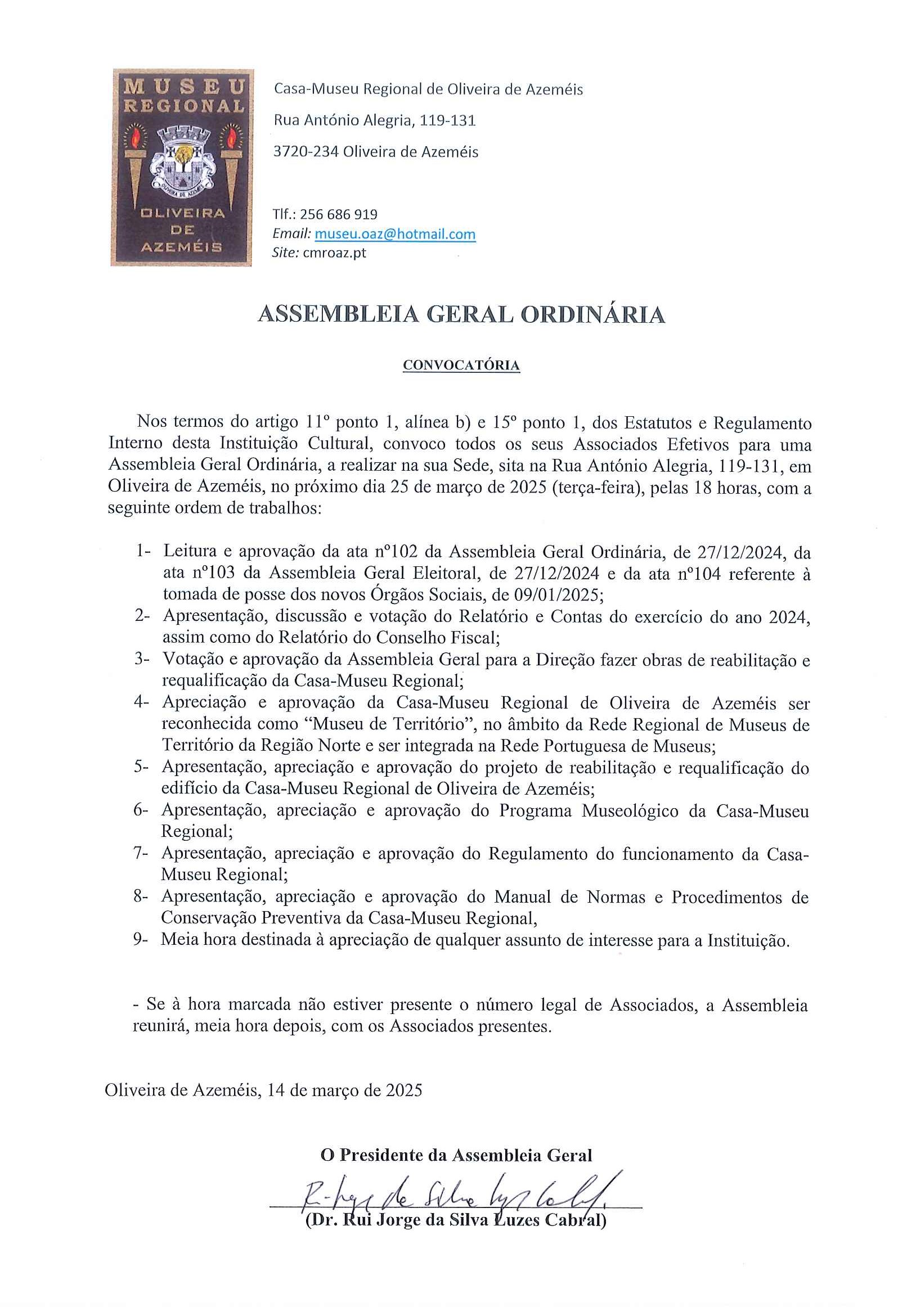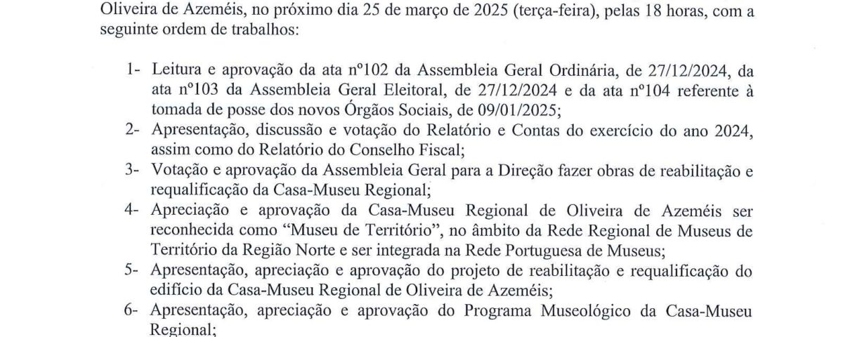 Assembleia Geral Ordinária da Casa-Museu Regional de Oliveira de Azeméis