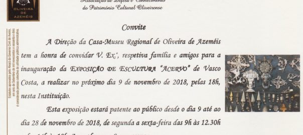Inauguração da Exposição de Escultura “Acervo” de Vasco Costa, no dia 9 de novembro de 2018, às 18h, na Casa-Museu Regional de Oliveira de Azeméis.