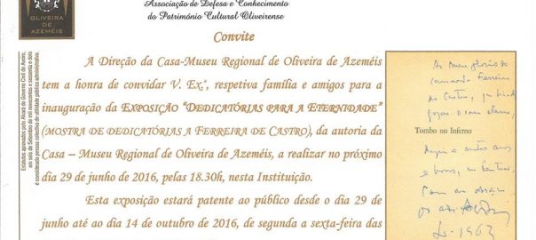 Dia 29 de junho de 2016 – Exposição “Dedicatórias para a Eternidade”No âmbito das comemorações do centenário da vida literária de Ferreira de Castro, a Casa – Museu Regional de Oliveira deRead More…