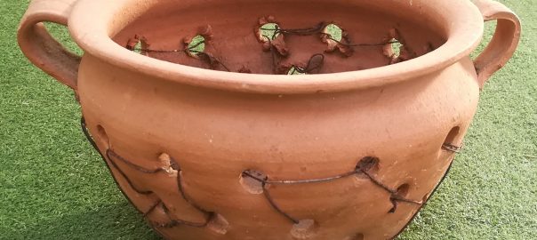 Esta peça é um assador de castanhas. É em barro e tem tonalidade alaranjada. A base é circular e plana com orifícios redondos (diâm.: 1,5cm) dispostos na sua superfície. Possui um bojoRead More…