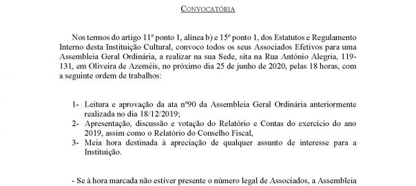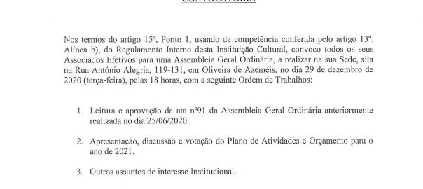 Assembleia Geral Eleitoral – Eleição dos Órgãos Sociais para o triénio de 2022-2023-2024 – 20 de dezembro de 2021 – 19h